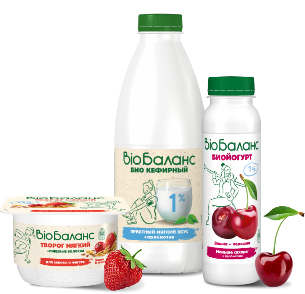 Свои идеи BioБаланс воплощает и в продуктах. BioБаланс биокефирный отличается приятным мягким вкусом и в то же время позволяет быть в форме благодаря низкой жирности и содержанию пробиотиков. А в апреле 2020 года бренд перезапустил линейку питьевых биойогуртов, убрав из них лишние сахар и жир, но оставив вкус и пользу.